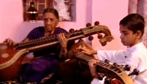 Starting with Maharaja Swathi Thirunal, compositions like Bhogindra Sayinam, Deva Deva Jagadeeswara, Gopalam Seveham, Jaya Jaya Padmanabha Murare, Jaya Jaya Padmanabhanujesa, Jaya Jaya Raghurama, Kripaya Palaya, Pahi Jagajjanani (Hamsanandi & Vachaspati), Pankajaksha Tava Sevam, Sarojanabha, Sathatham Thavaka, & Vande Sada Padmanabham were learnt within a short span of time and practiced every evening after 6 pm. All those compositions were learnt by my grandmother from illustrious Gurus such as Parassala Ponnammal and Vechoor Hariharasubramania Iyer who belonged to a great lineage. As a recipient of Scholarship from the Ministry of Culture, she underwent advance training from legendary Vidwan Padmabhushan KS Narayanaswamy with an aim to master in Veena playing by imbibing the immaculate KSN Bani. To her students, she passed on the Gayaki style (reproducing vocalized dynamics, particularly in rendition of compositions) followed by Vidwan KS Narayanaswamy, giving more importance to nuances and subtleties over rhythm-based acrobatics.